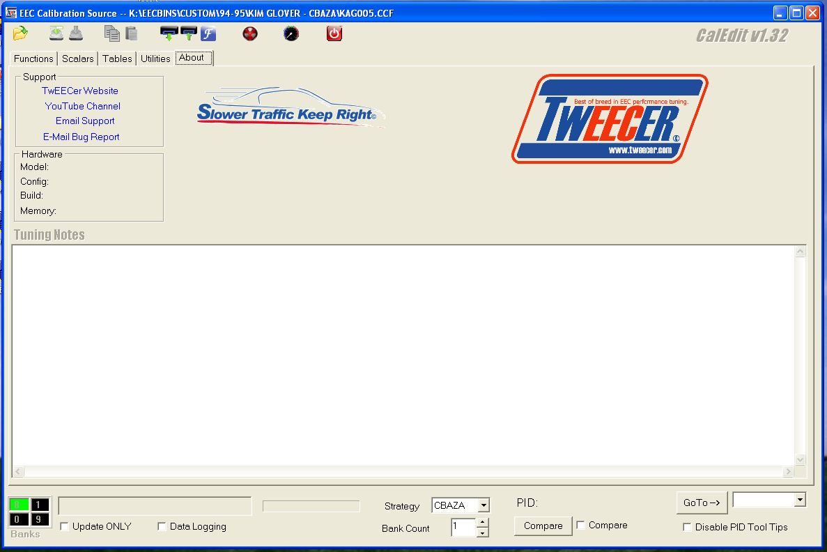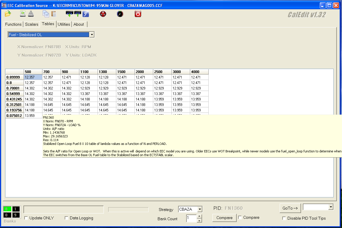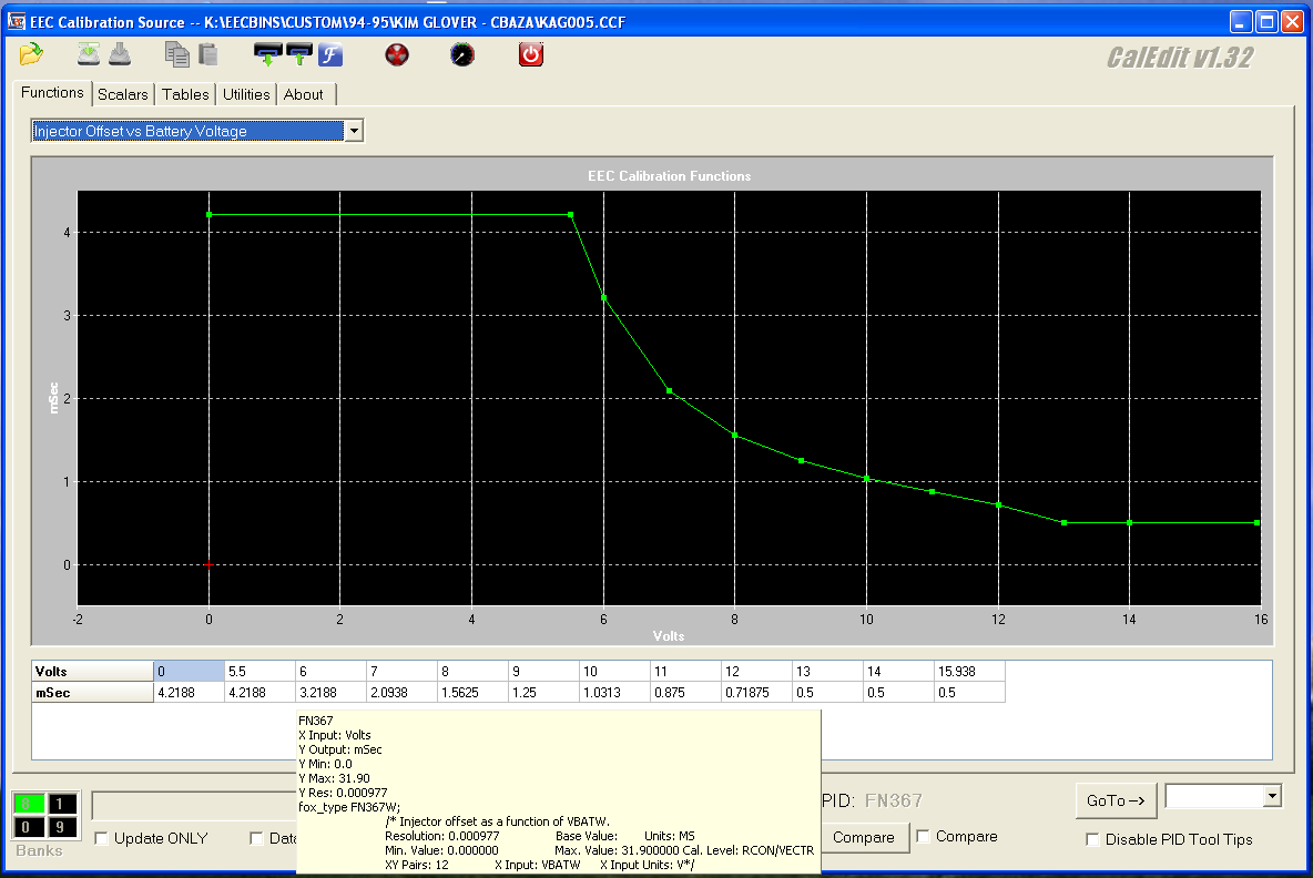 Here are screen shots of CalEdit (Calibration Editor), the software